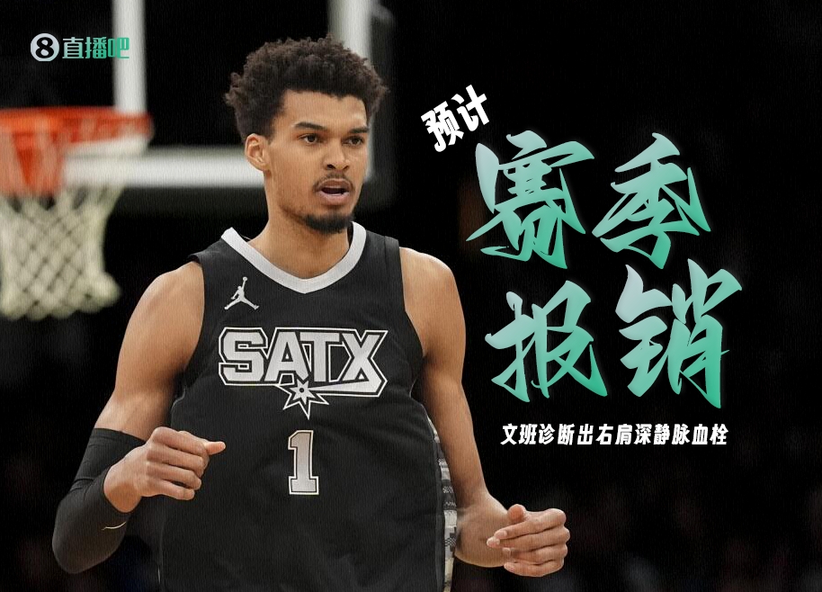 2月21日,在旧金山全明星周末结束后,马刺官方宣布,文班亚马被诊断出右肩深静脉血栓,赛季报销。
